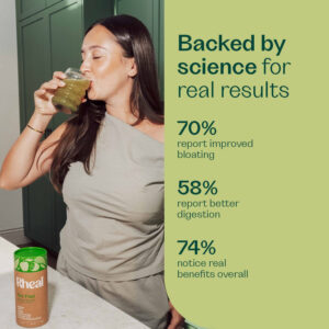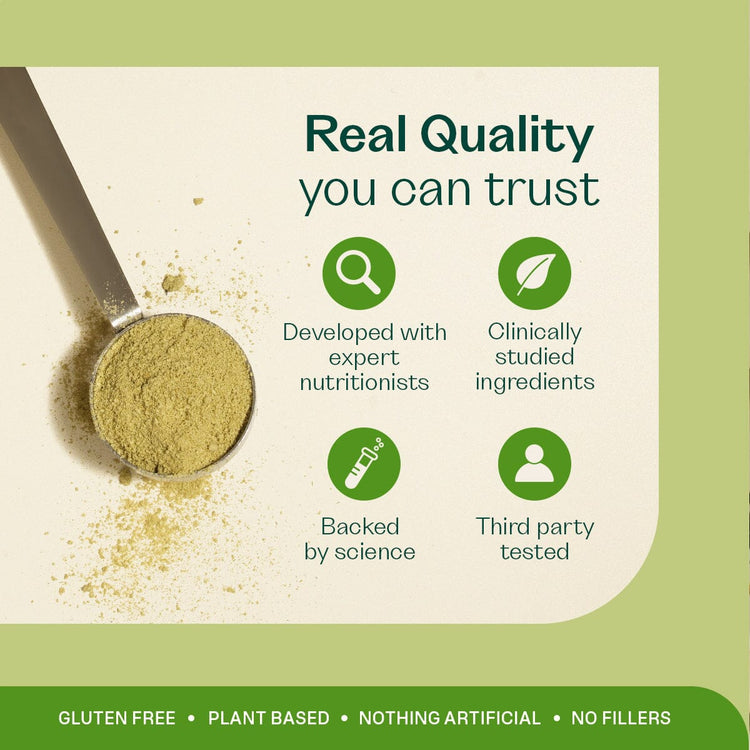 Gut support that starts with real food – helping ease digestion and keep things moving, naturally.With apple, baobab, Actazin® kiwi & ginger, plus fibre-rich greens and sea-sourced calcium.